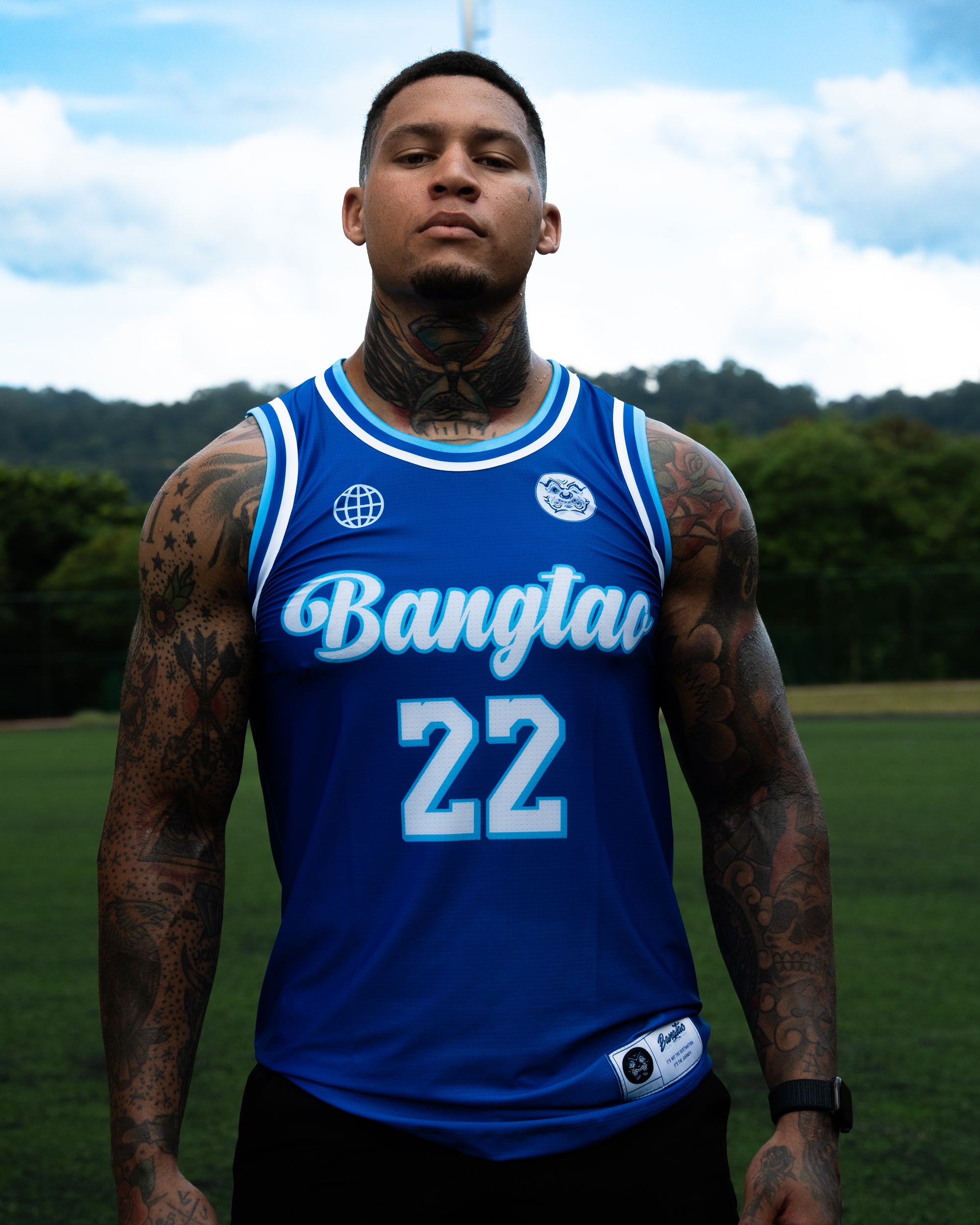 The Island of Angels Baller Jersey blends sport heritage with Bangtao identity. Inspired by iconic throwback jerseys, this release features a bold royal blue base, clean white trim, and classic lettering.
